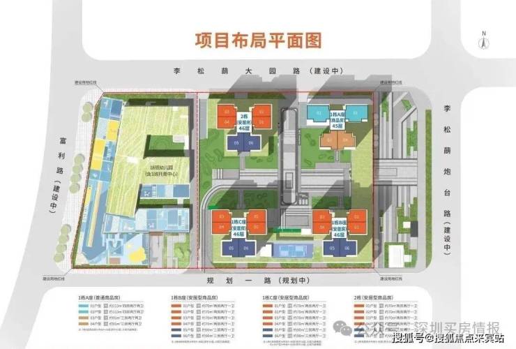 配套教育:配建18班社区幼儿园(含3班托育中心)。直线距离约600米处有深圳外国语学校光明学校(九年一贯制公办学校),周边还有李松蓢学校、公明第一小学、公明第二小学等。医疗:距离约939米处有深圳市光明区人民医院(新院区,三甲医院)。公园:邻近茅洲河碧道光明段,周边有南光秘境公园、上村生态公园等。地铁:项目东侧紧邻在建的地铁13号线李松蓢站(首发站),开通后可直达南山科技园、留仙洞总部基地等核心区域;3站换乘地铁6号线可直达龙华、福田、罗湖三区。自驾:靠近南光高速和龙大高速,驾车约2公里可上南光高速,约2.9公里可上龙大高速,快速通达南山、龙华等区域。