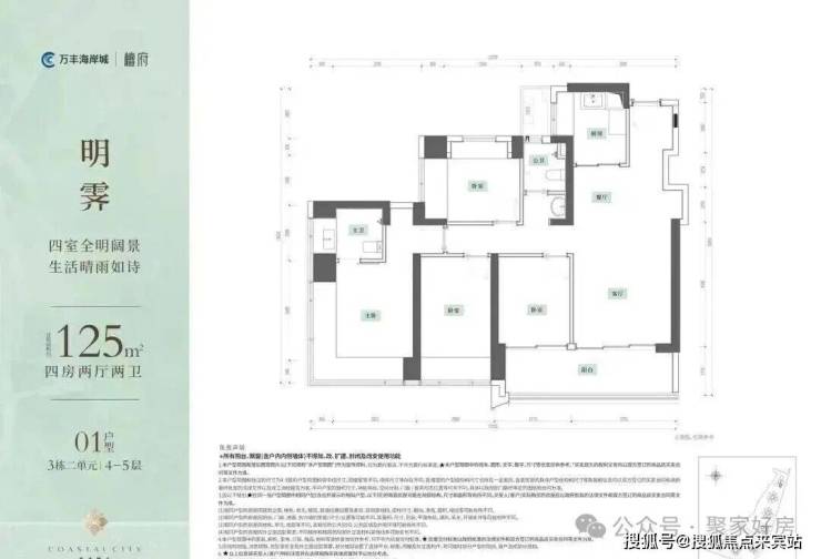 万丰海岸城檀府(北地块),总占地面积约1.89万㎡,总建筑面积约17.96万㎡,计容建筑面积约12.87万㎡,容积率6.79,绿化率40%,共由4栋46-47层住宅组成,其中3栋1单元/2栋2单元商品房45层,3栋2单元商品房46层,2栋1单元47层,规划1所12班幼儿园。