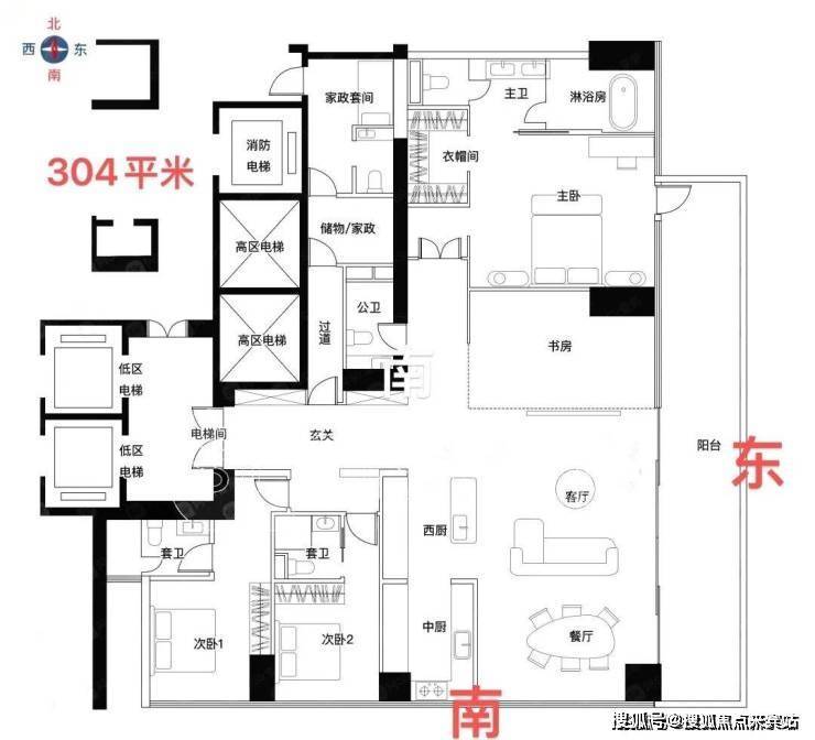 ——低区 4F起(150米以内)是约209-304㎡四房大户型;