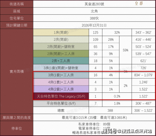 单位总数:共提供388伙住宅单位