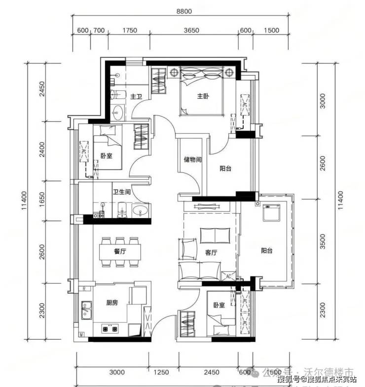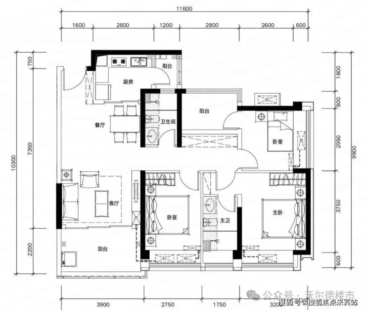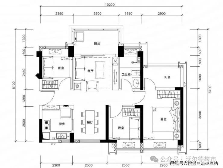 ✅ B06 户型:约109㎡ 阔绰四房两厅两卫: