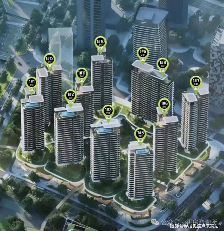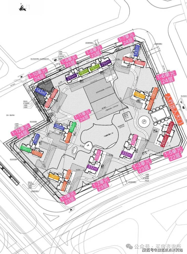 整个项目围合式布局,共规划打造11栋住宅,分别为1栋一至三单元,以及1栋五至十二单元。