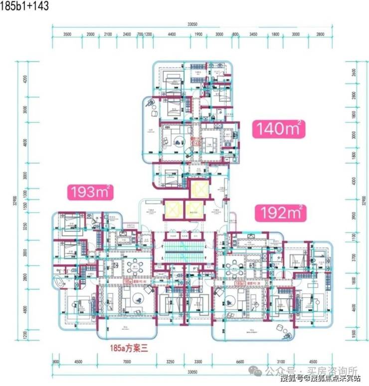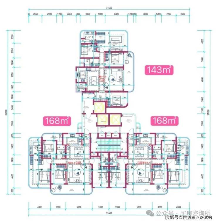 主要为2梯2户、3梯3户的户型。如果按目前规划的层数梯户比算是657套房源,因为正常现在都有架空层不确定2层还是3层起算首层,所以最终户数可能有点小差距,以实际公布为准,车位地上271+地下934个一共1205个,如果最终是2-3层为首层车位比应该能达到1:2以上