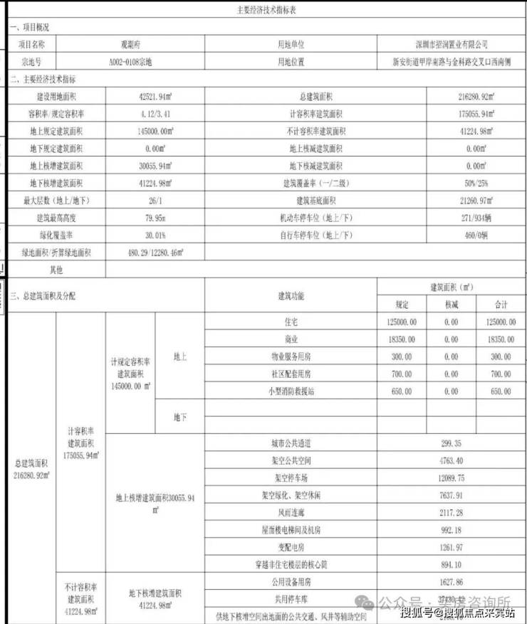 11月18日,深圳规自局披露了观潮府项目的《建设工程规划许可证》及总平面图。