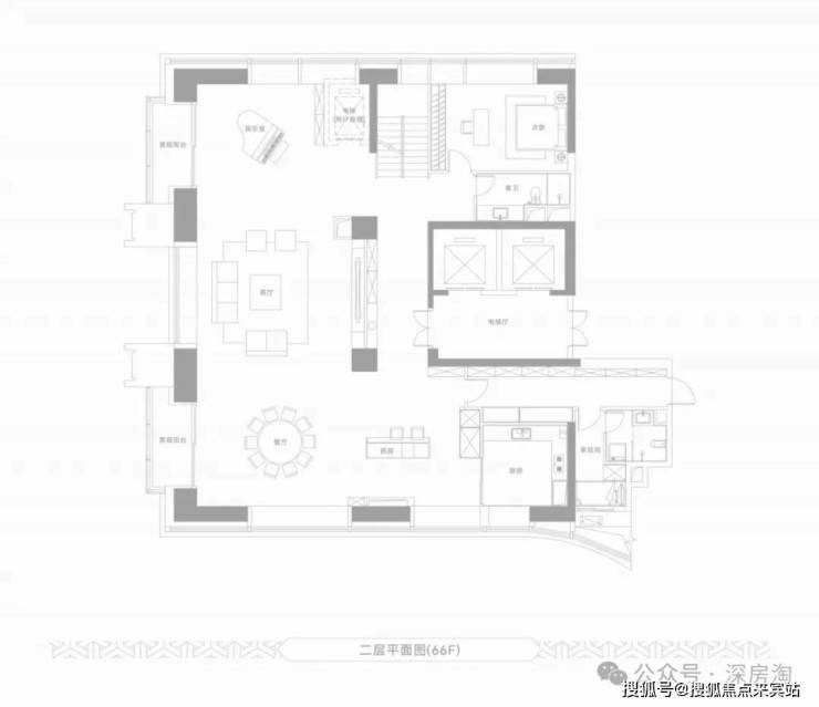 【约280㎡4+1房4卫】双梯入户,独立电梯厅,阔绰横厅直连阳台,三面舒适采光,主次卧双套房,270°环幕视野,还有独立家政套间,西南朝向看城市景观,高层可看深圳湾海景;