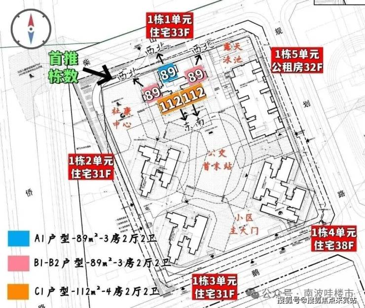 这次首推的是01地块,总占地面积约1.53万㎡,总建筑面积约13.68万㎡,计容建筑面积约9.55万㎡,容积率6.23,绿化率30.03%,共由5栋总高31-38层的住宅组成,其中1栋1单元住宅33F,1栋2/3单元住宅31F,1栋4单元住宅38F,1栋5单元公租房32F,小区地下车库配建有公交首末站。