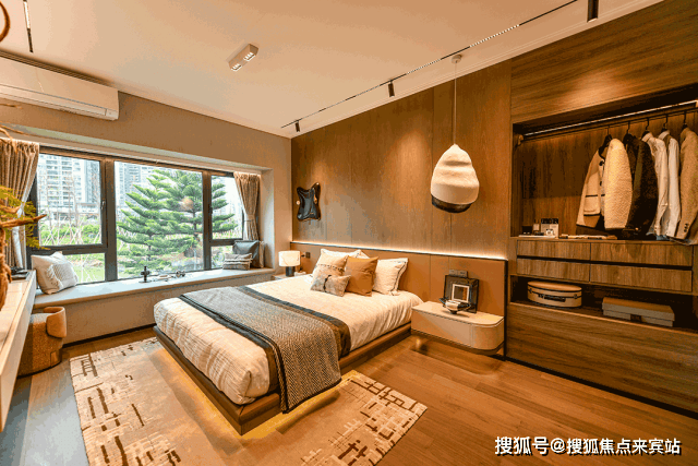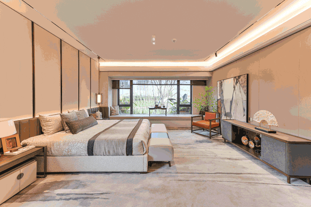 约20㎡奢阔主卧,赶上市面上常见的客厅面积一样大,带有独立卫浴、衣帽间,全景飘窗,贴心照顾男女主人的私密、尊贵感。