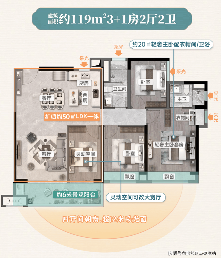 超12米IMAX采光面,约50㎡LDK+X空间,约6米大阳台...市面上其他盘同等面积,拥有其中一点两点已是极致,而项目直接将全部融入产品。