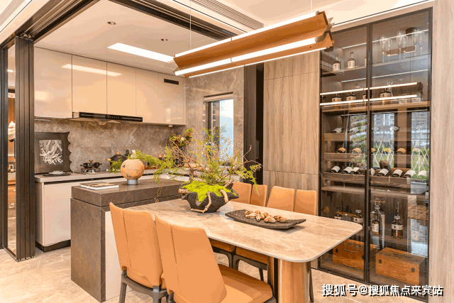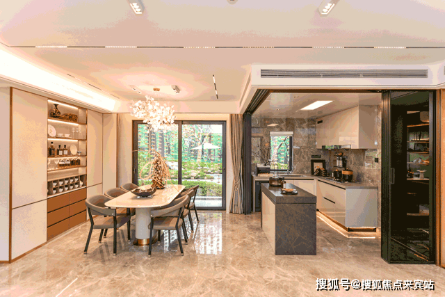 最难得的是开放式厨房+岛台设计,不仅增加收纳空间、操作台面,还增加互动体验。