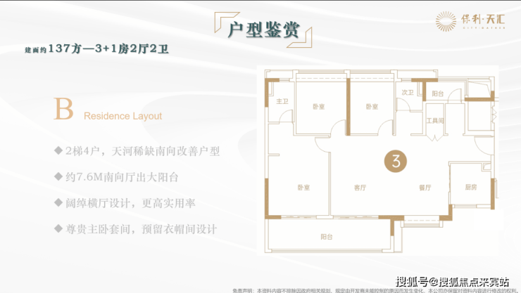 保利天汇位于广州市天河区大观中路120号,坐落在天河智谷板块,占地30万㎡,总建筑面积78万㎡,容积率4.59,绿化率23%。项目规划16栋住宅,分五期开发,涵盖高端住宅、商业、写字楼、酒店公寓等多业态产品。当前在售五期,主推99-131㎡三至四房精装户型,总户数约1790户,车位比1:1.33,为改善型买家提供丰富选择。