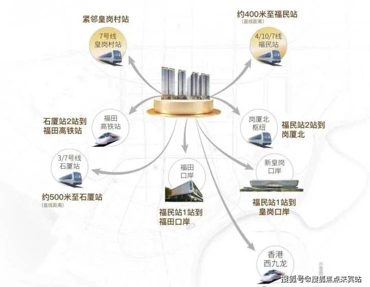 项目紧邻滨河大道、新洲路及粤港澳高速等主干道,10分钟车程覆盖福田CBD核心商圈,15分钟直达皇岗口岸,20分钟可达宝安国际机场。未来新皇岗口岸将于2026年投入使用,采用"合作查验、一次放行"通关模式,通关时间将从原来半小时左右缩短为5分钟左右。