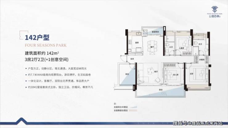 公园四季1期为南向纯板楼设计,楼间距开阔,在售90-143㎡户型;二期则为塔楼设计,性价比更高,在售95-115㎡户型。