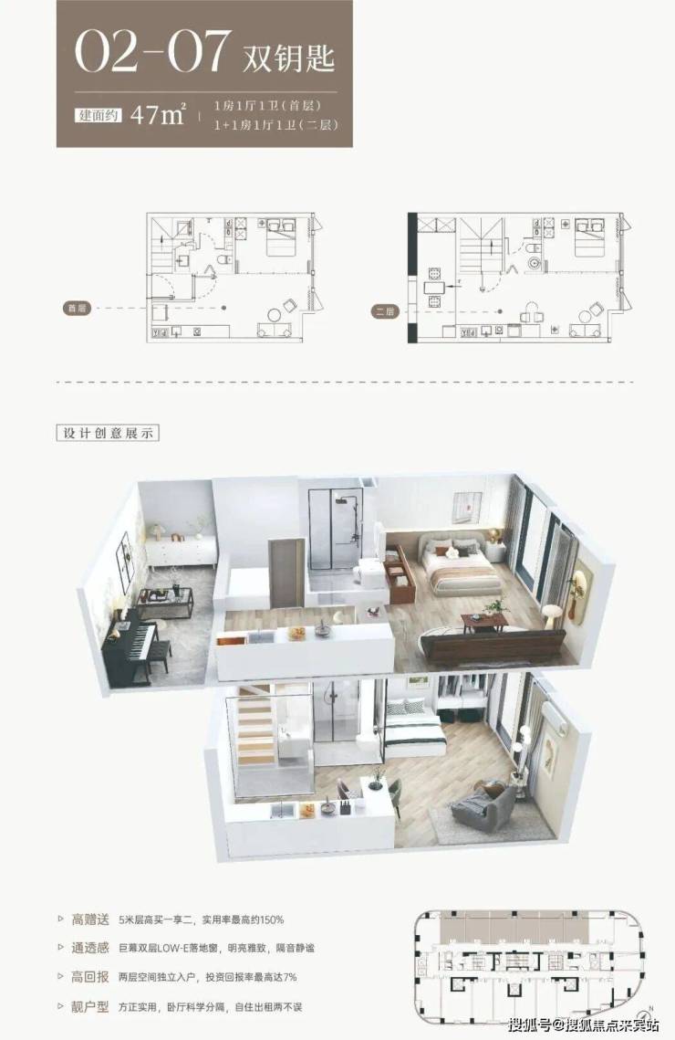 1楼:住宅7米挑高独立入户大堂、公寓/派出所/邮政局入户大堂、三点半啡吧/四点半学堂/六点半茶居配套。