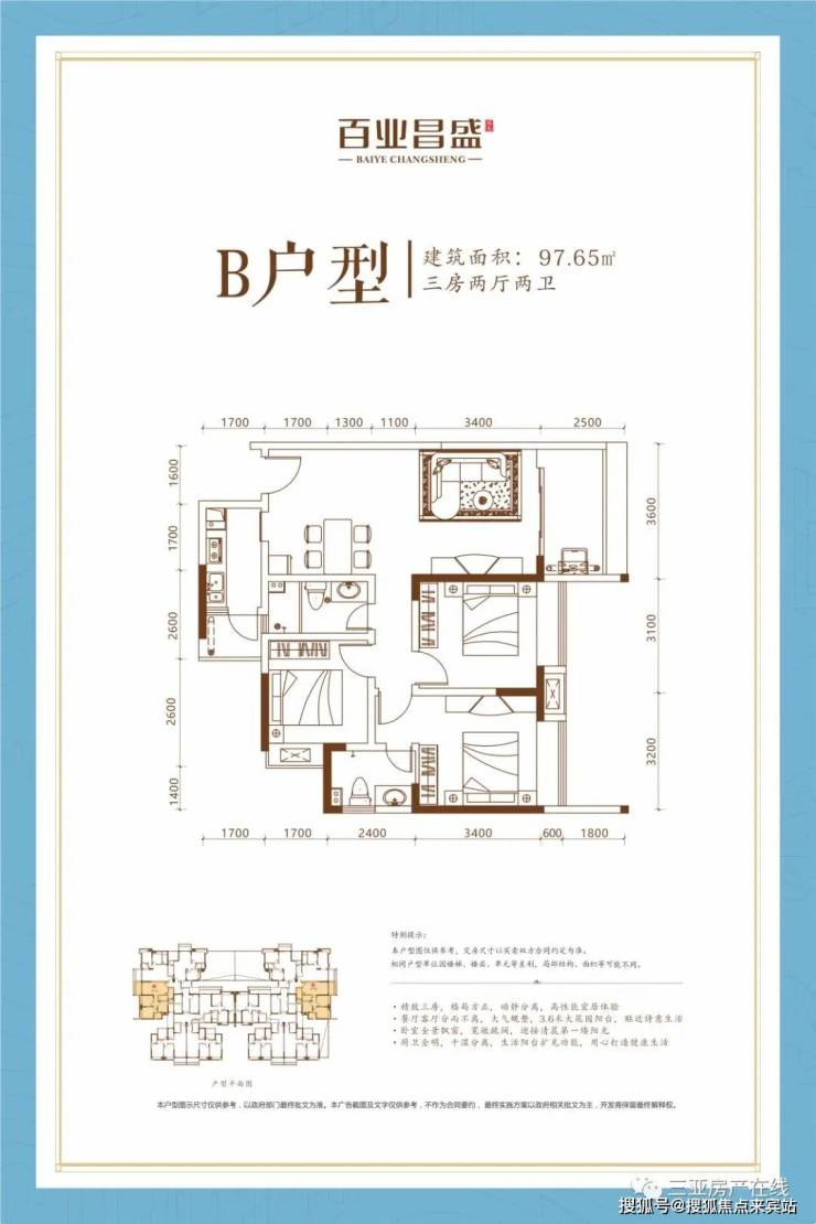 B户型 97.65㎡ 三房两厅两卫