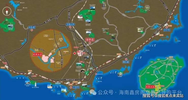山海高速&海榆中线两大交通主脉接驳全岛,东北约20公里抵达保亭,西北约30公里抵达五指山,南约40公里抵达三亚、🚘国家海岸海棠湾、🛒免税商圈等。