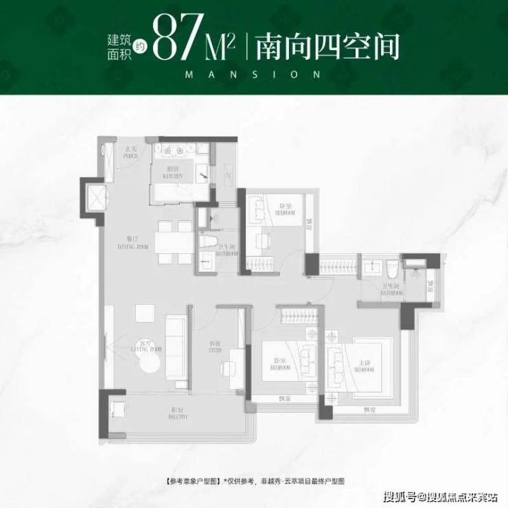 🔹建面约87㎡一步到位四空间