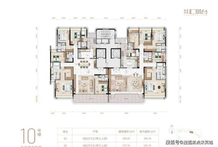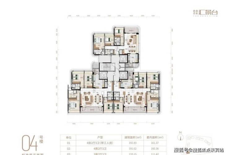 项目由14栋12层小高层组成,产品涵盖123-352㎡三至五房,共8类户型,户型实用率约82-84%