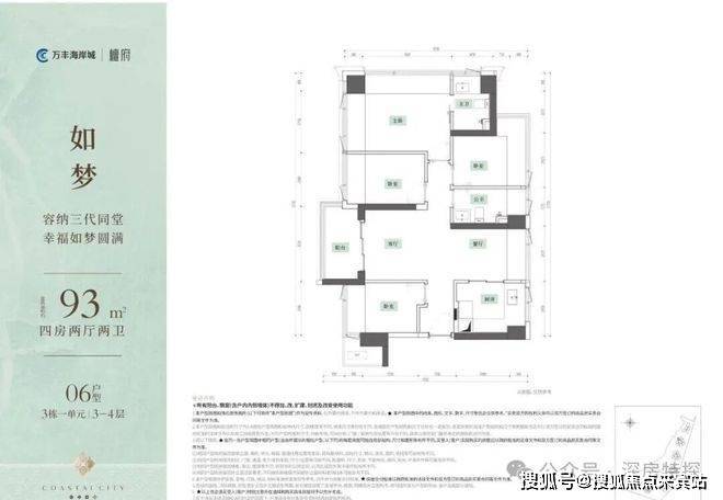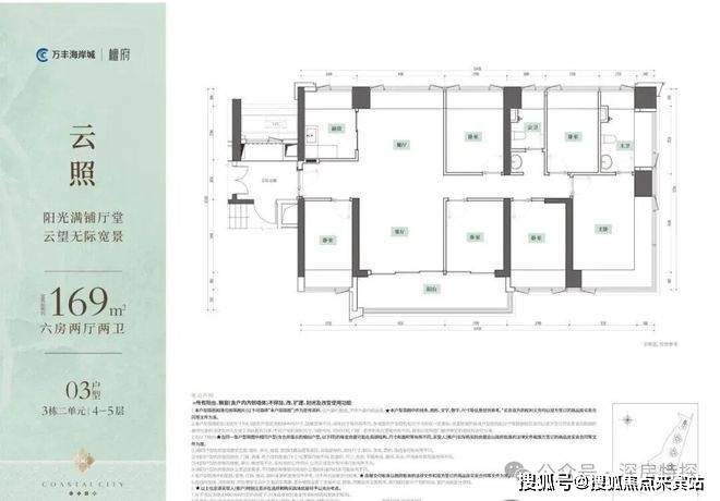 超16米东南采光面,阳台超7米宽;主卧进深4.5米,L型飘窗可270度景观。