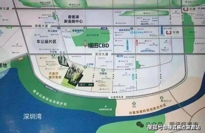 深圳中洲湾迎海二期位于福田区沙头街道上沙社区,地处福田大金沙片区。该片区是目前整个福田区域内城市更新地块最大的区域,包括了沙尾村、沙嘴村、上沙村、下沙村,政府投入了300亿进行规划,后续将规划总建面350万㎡的住宅和412万㎡的产业空间。这一区域是深圳核心区域内目前唯一一个产城一体化的城市更新单元,具有巨大的发展潜力。