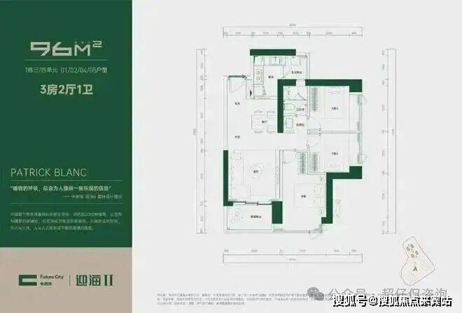 西南或东北朝向,经典竖厅,客厅出阳台,客厅阳台较小,使用率较低,卫生间对着厨房阳台墙,主卧进门有一定浪费,有可能700万起价