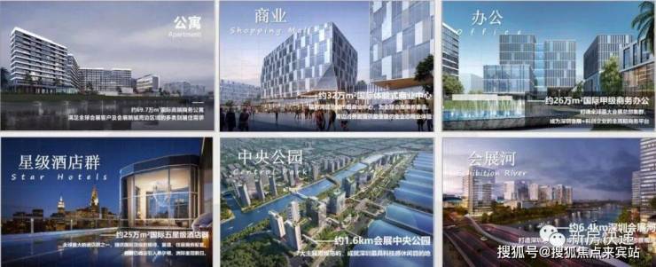 深圳会展湾定位“创新型会展产业综合体”,以超300万㎡总体量,集合约160万㎡国际会展中心及约154万㎡包括国际体验式商业中心、星级酒店群、高端公寓群、会展商务基地、会展公园、会展河等复合功能业态会展综合配套。