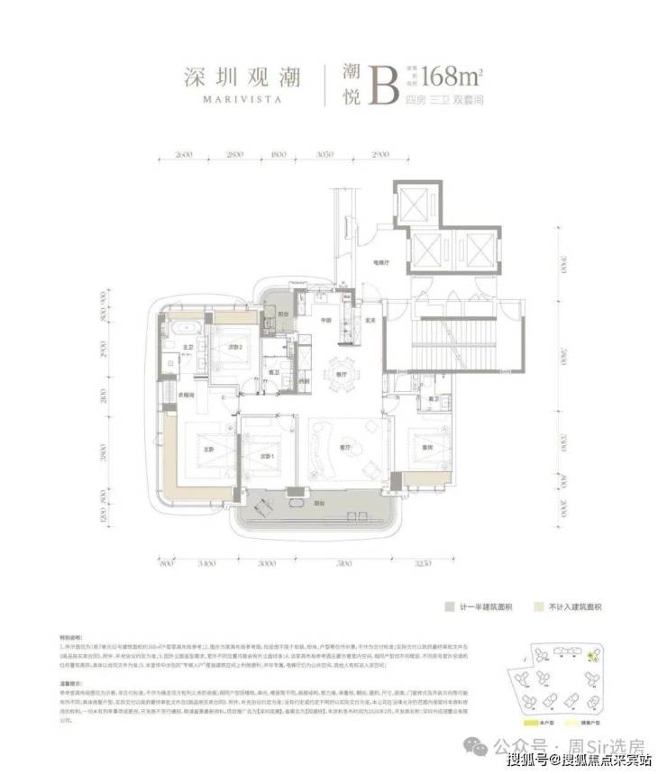 建面约168㎡四房三卫双套间