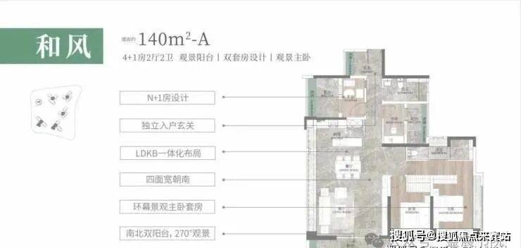 建面约140㎡的户型,把居住空间进一步拓展,甚至连主卧均做到了三面采光,将主卧的观景角度扩大到了270°。
