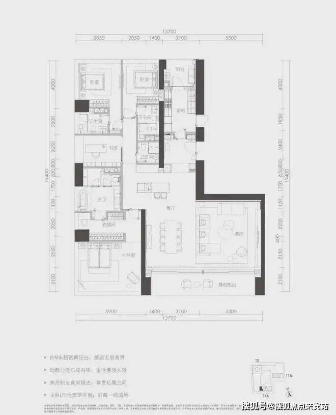 华侨城新玺主打塔尖顶豪定位,主力户型涵盖230-700㎡环海大平层,包含3-6房及高端商办产品,规划3栋超高层建筑,共数百套稀缺房源,均为精装现楼交付,即买即住。户型采用3.6米奢阔层高,梯户比达3梯1户或3梯2户,部分高区户型一层一户,270°环幕落地窗设计,适配企业主、塔尖精英等高净值人群,圈层纯粹且私密。