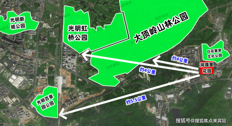 另外在自驾20分钟范围内,还有光明虹桥公园,大顶岭山林公园,光明新城公园,光明百草园公园等等自然景观配套。
