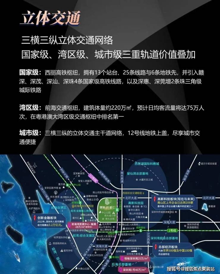 二、立体交通地铁上盖物业,无缝接驳地铁12号线中山公园站,经深南大道、月亮湾大道、北环大道新城立交,直通前海。前海交通枢纽,海、陆、空、轨四维立体交通,畅达粤港澳大湾区各大城市。