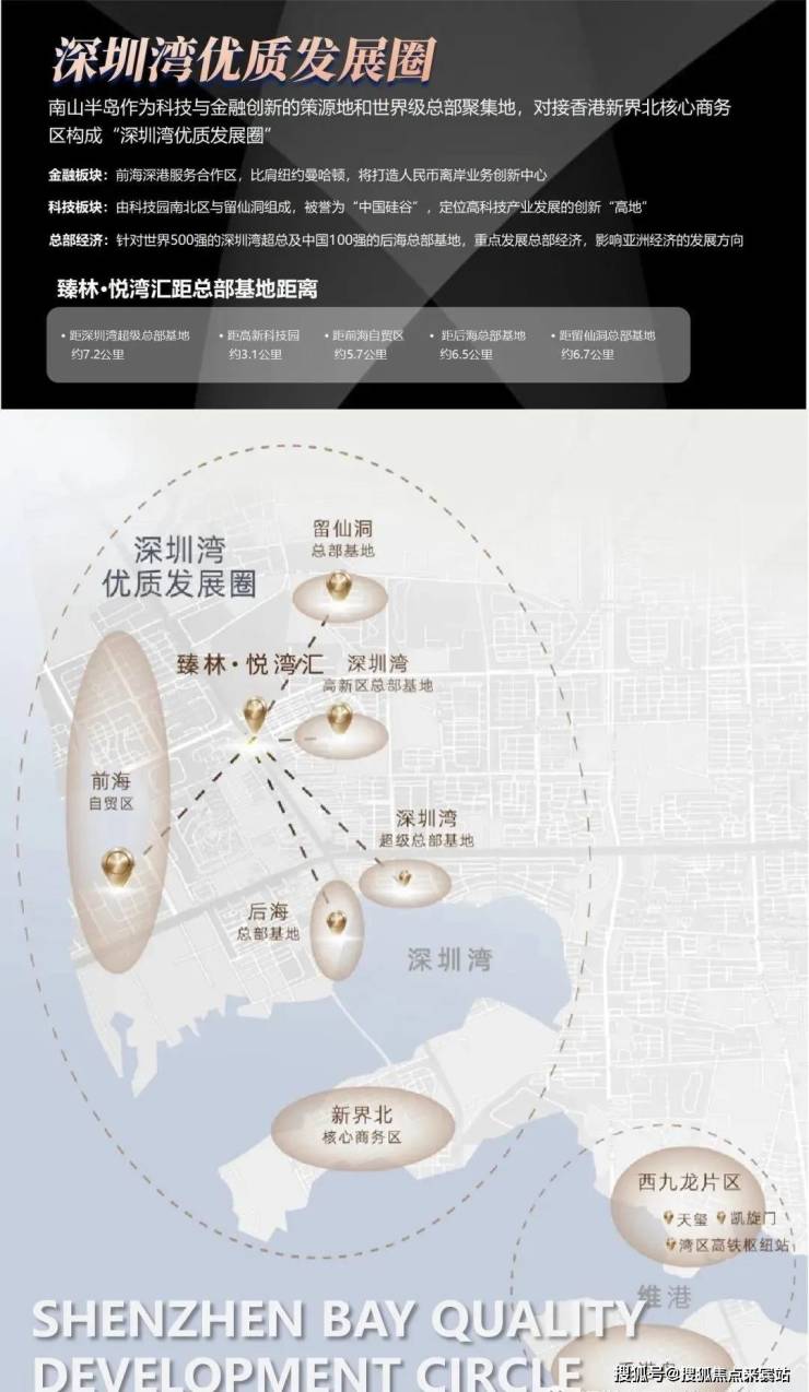 一、湾区前沿择址深圳湾优质发展圈:最前沿+最宜居人居,对接香港新界北核心商务区。位踞前海深港合作区、高新科技园、后海、深圳湾及留仙洞总部群黄金原点,承接全市大量高净值人群的居住需求。