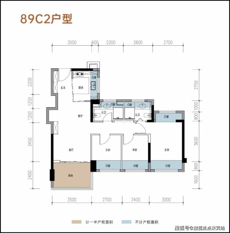 约89㎡3房:折后单价约3.36-3.74万/㎡,折后总价约297-330万