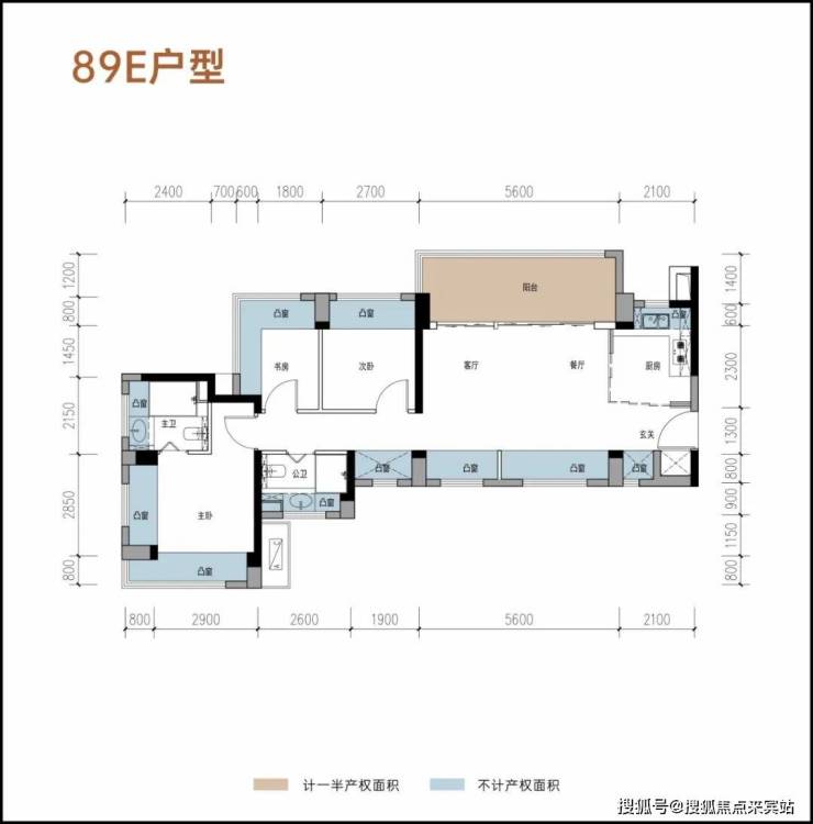89㎡三房南向四开间,动静分区合理,采光通透;