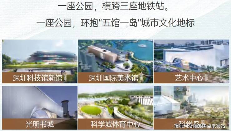 光明科学城占地约208万㎡,定位为深圳北部中心的“绿色核心”。配置有深圳国际美术馆、深圳科技馆新馆、科学城体育中心、光明文化艺术中心等市级文体配套,享深圳顶级市政配套生活。