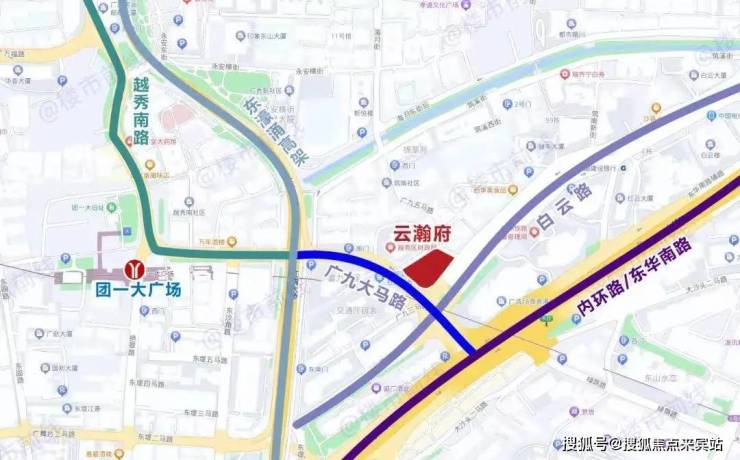 云瀚府项目位于越秀区广九大马路,距离地铁6号线团一大广场站步行约300多米。