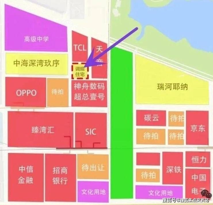从下图可以看到,地块处于中海深湾玖序东侧,TCL大厦南侧,天音大厦西侧,神州数码北侧,四面都被写字楼/酒店包围了。