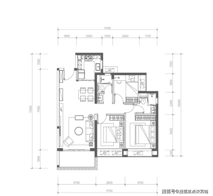 • 3.7米舒适大开间客厅(常规产品3.4米)