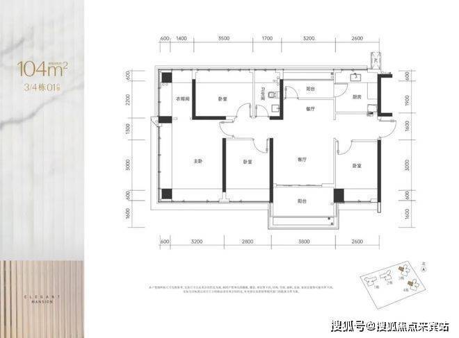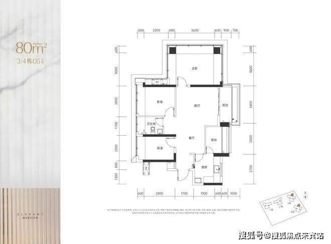 格局:3房2厅1卫,朝向东南,竖厅设计