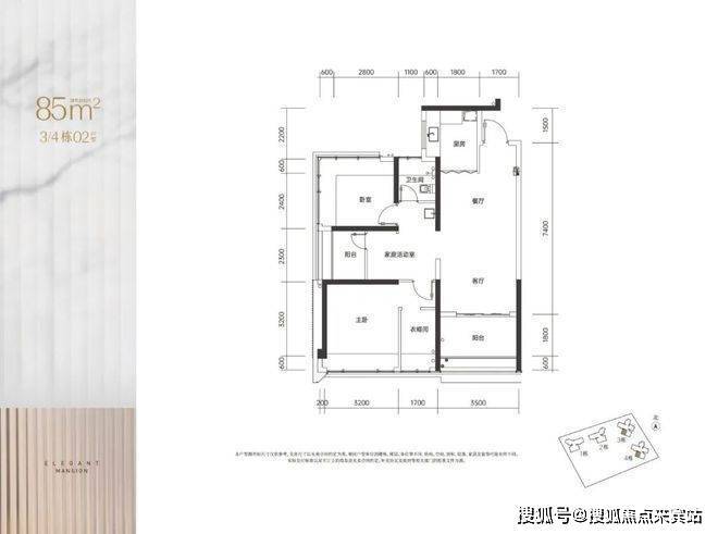 主卧带衣帽间,整体面积达17.34㎡,宽敞舒适,衣帽间可改为卫生间,实现85㎡双卫设计,提升私密性。