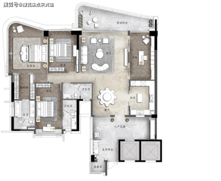 四房全套房设计,满足大家族三代同堂居住需求,极致动静分区设计,留存家人私密隐贵空间。