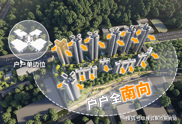 所有楼栋呈东西向展开,以南低北高的形式排列,让楼栋之间的遮挡大幅度减少,让南北的采光面、景观面最大化!
