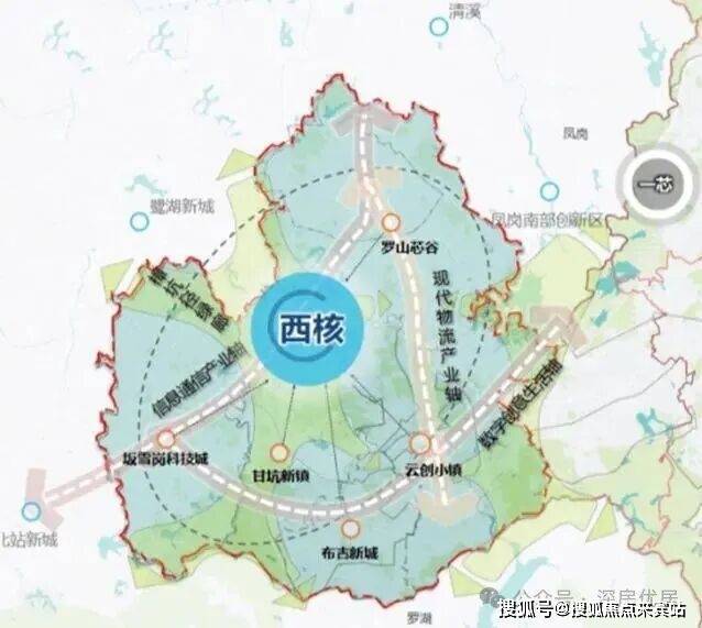 吉华承担着建设龙岗区“一芯两核多支点”发展战略中的“西核”——数字信息核、协同周边区域打造世界级ICT产业集群承载区、构筑龙岗“都市科技绿芯”的使命任务。片区与坂雪岗科技城仅一路之隔,具备承载世界级电子信息产业集群辐射的政策优势和天然区位优势。