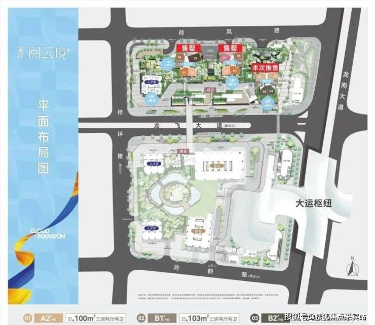 深铁·阅云境,作为大运交通枢纽上盖物业,总占地面积约5.66万㎡,总建筑面积约51万㎡,以龙飞大道为界共分南北2期开发,有空中连廊相连,北区建设住宅小区,南区兼顾了公共性和便捷性,主要规划超高层办公写字楼和大型商业mall。