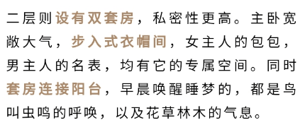 五层则是约33㎡的主卧套房,带步入式衣帽间,连通阳台,尽显卓尔不凡的气度。