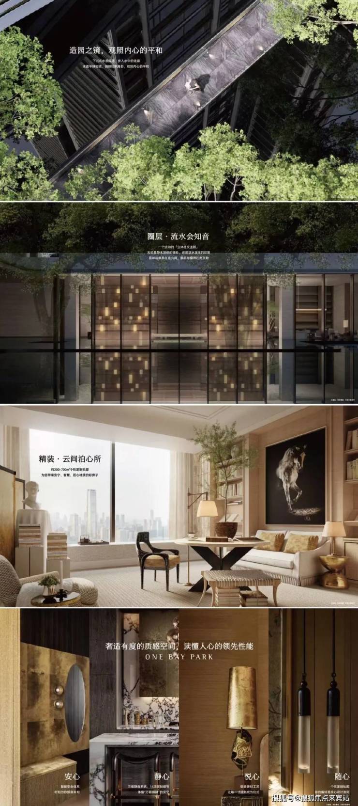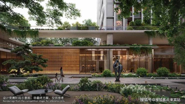 小区园林有三层,以“国际,艺术,典藏”展开设计,结合“在地文化”,“非遗文化”演绎,以中心庭院串联各功能空间,倡导开放、多维、互动的空间设计。这里有一个比较感人的地方,就是这个“生机之斗”的设计理念,可以把阳光拉进最底一层的车库里面,灵感源自新加坡樟宜机场的理念。
