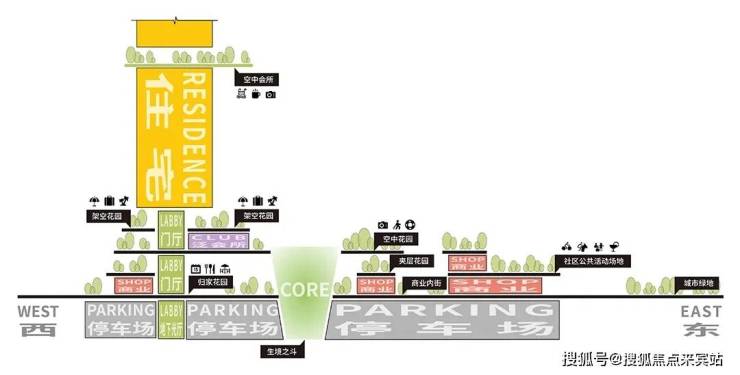 还有综合性会所,位于南区的高线公园,另外6栋酒店公寓里设有空中会所和城市第六空间观景台。