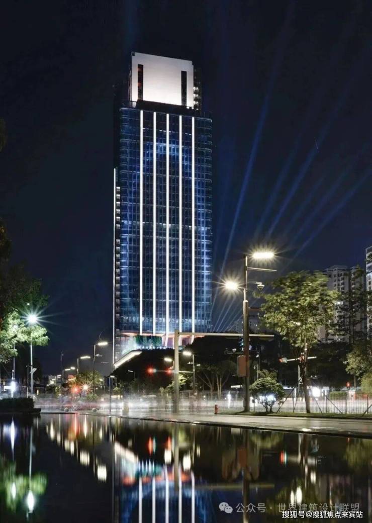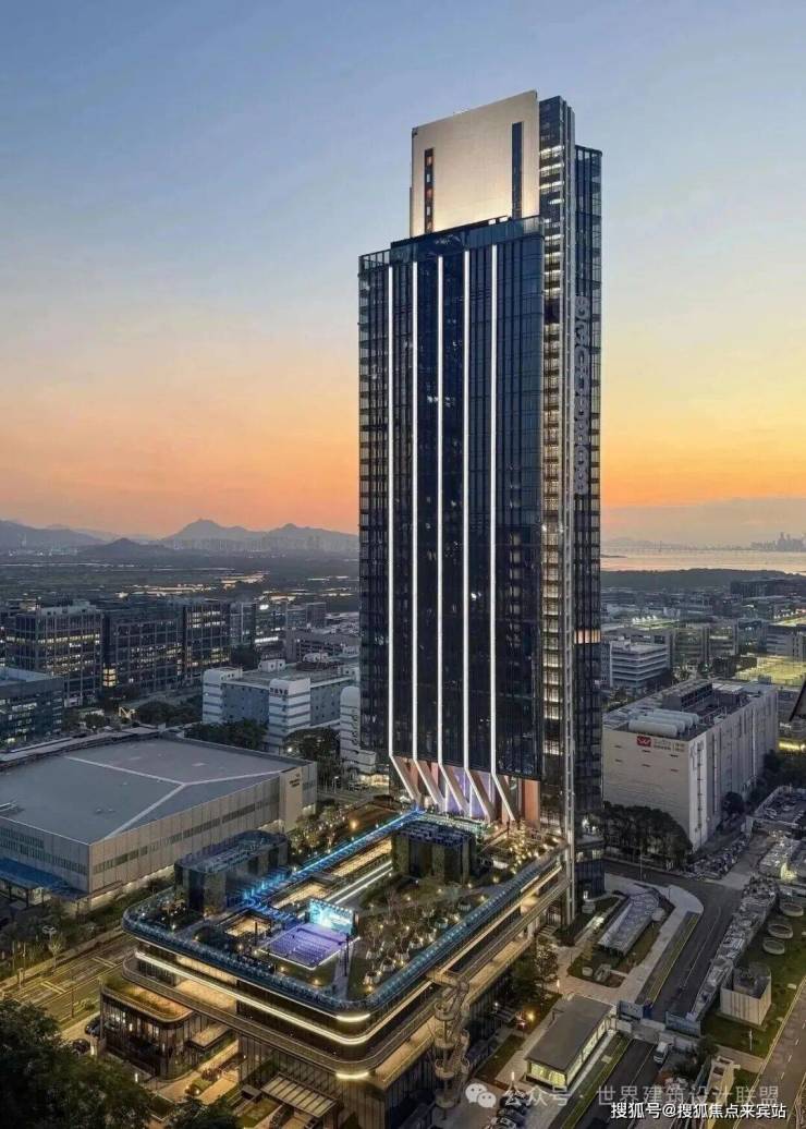 项目位于深圳市福田区市花路与槟榔道交汇处东北侧,总建筑面积108,680平方米,高44层,建筑高度199.65米,融合了原本独立的两个地块建筑,形成有机整体。塔楼低区设有共享办公区和健康中心,中高区则打造灵活的商业办公空间,为不同规模的科创团队提供梯度化空间选择。