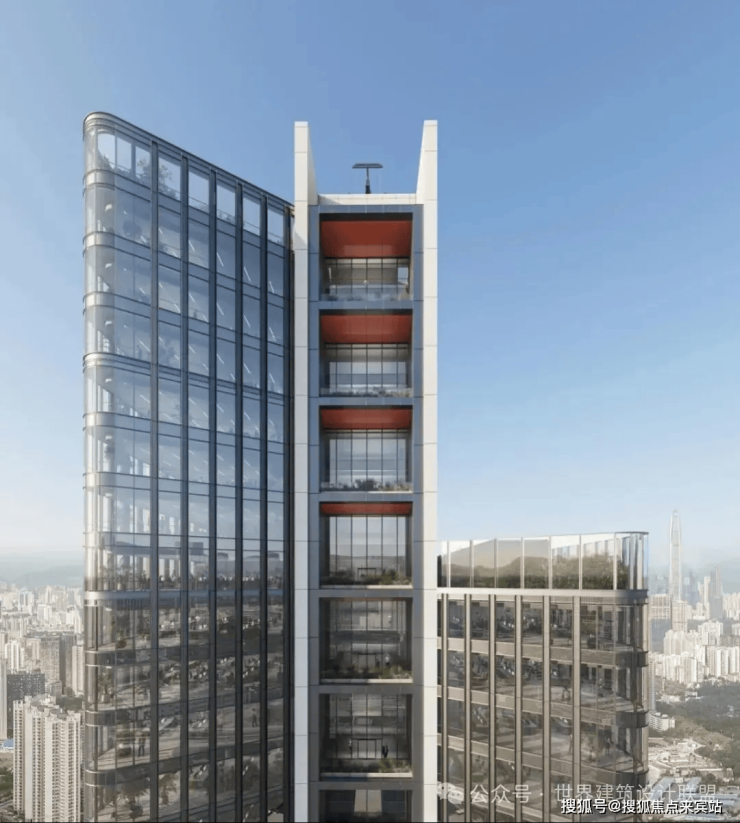 生态融合是项目的另一大特色。为贴合深圳市民观鸟习惯,大楼西翼特别设计了层叠式绿色露台,融合功能性与生态理念,打造绝佳观赏位置。建筑的"河套绿谷"采用垂直绿化设计,营造花园式办公场域,生态景观始于约14,816平方米的河套合作区中心公园,连接商业裙楼屋顶花园,优雅延伸至办公塔楼。