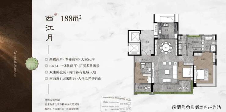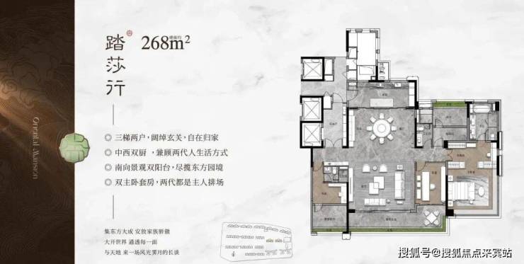 再来看看此次加推的268平的大面积户型,作为项目的旗舰,暗藏着哪些巧妙的设计?