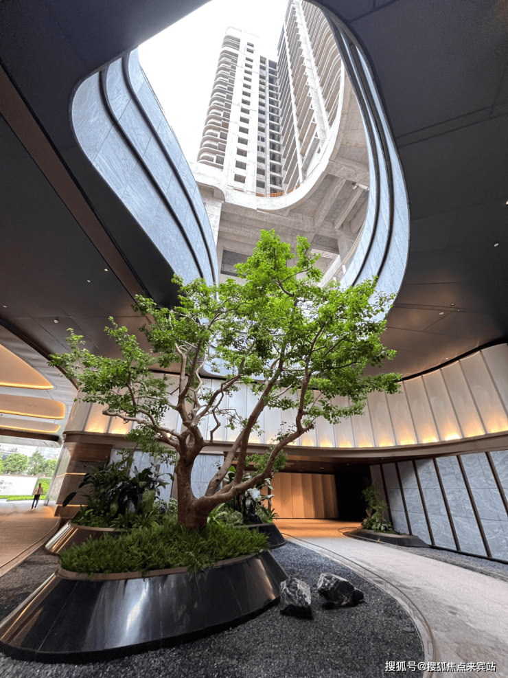 从小区大门进来是下沉的落客庭院,再进入都荟天珺的小区大堂,即可目睹约8米奢华挑空的落客大堂,其壮丽背景墙延绵40米,选用皇家白玉奢石,其色泽纯净透亮,营造出一种贵气逼人的氛围。此石材通常仅作为高端会所与豪宅的点睛之笔,而在这里,独具匠心地将其铺陈为整面墙体!身处其中,您定会被这宽敞明亮、奢华非凡且充满艺术魅力的大堂空间深深打动,感受到一种前所未有的震撼。